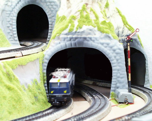 Dann muss es spannender werden: der Zug auf der roten äußeren Strecke